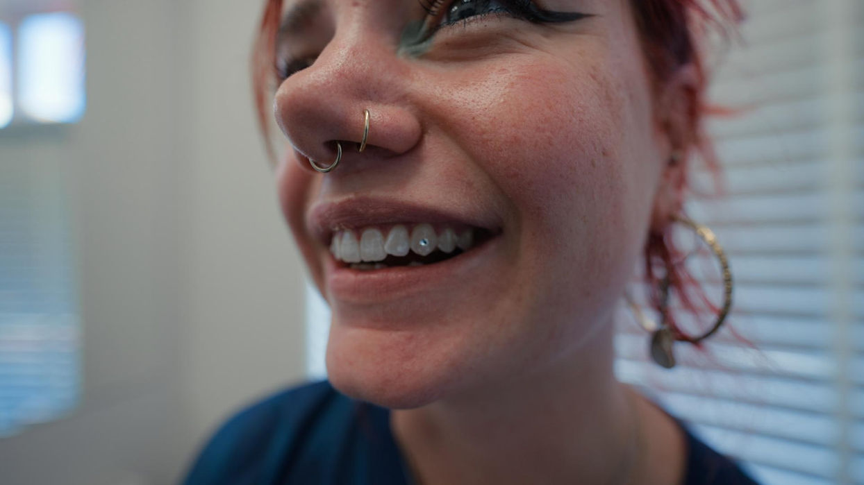 Tooth gems are a semi permanent way to make your teeth sparkle.